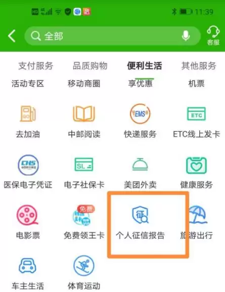 在里面的【便利生活】点击-【个人征信报告查询】