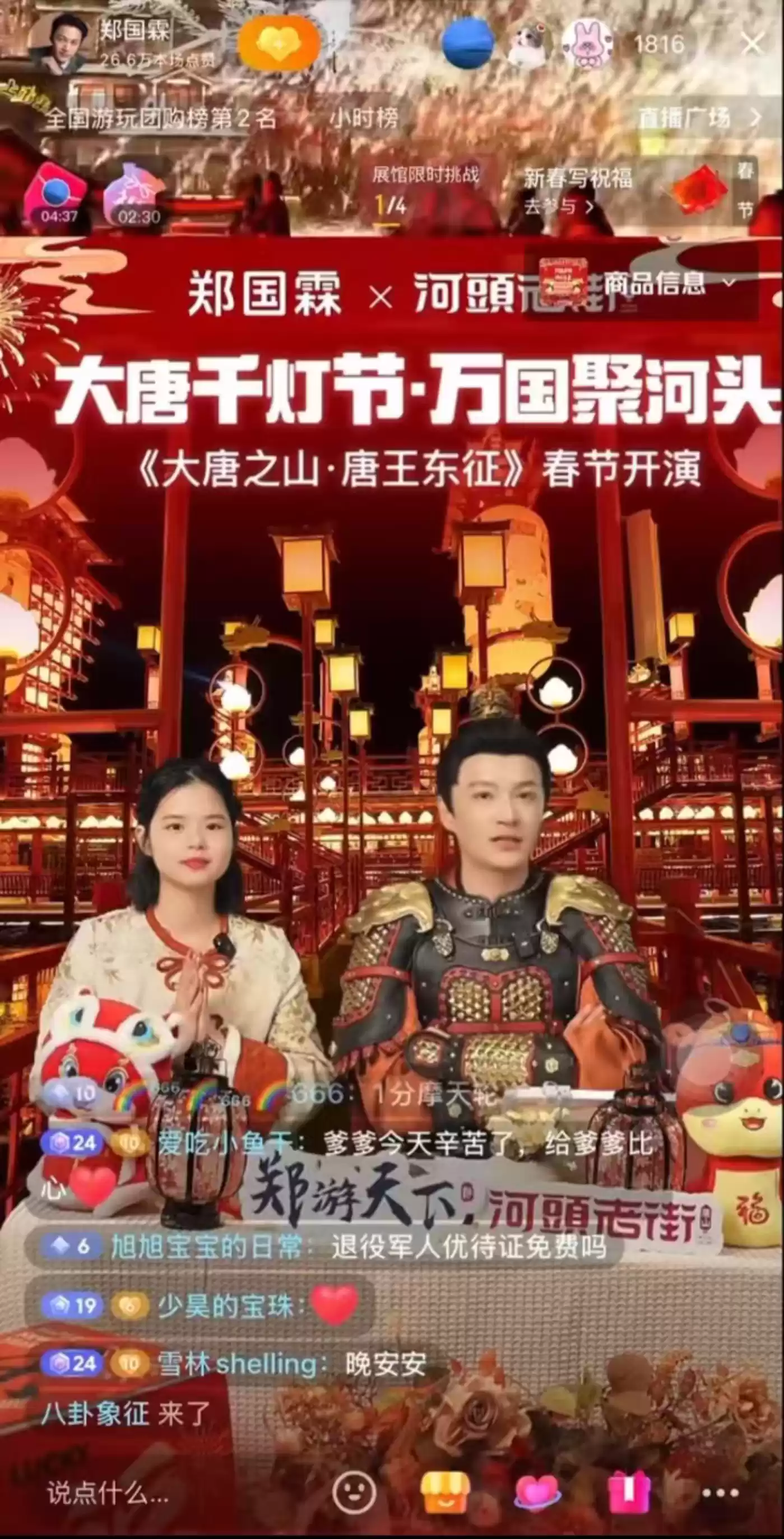 卢俊刚告诉我们,抖音酒旅赛道里,「直播占比非常高,大概55%以上」,于是在内容形式上选择直播开播。在选品上,「本地生活是品带人的逻辑」,只有合作自带流量的品才可能快速起步,于是找到当时春节期间很火的唐山河头老街——2025年春节,河头老街举办大唐千灯节,河头老街唐王东征剧场正式开放,自带关注度。