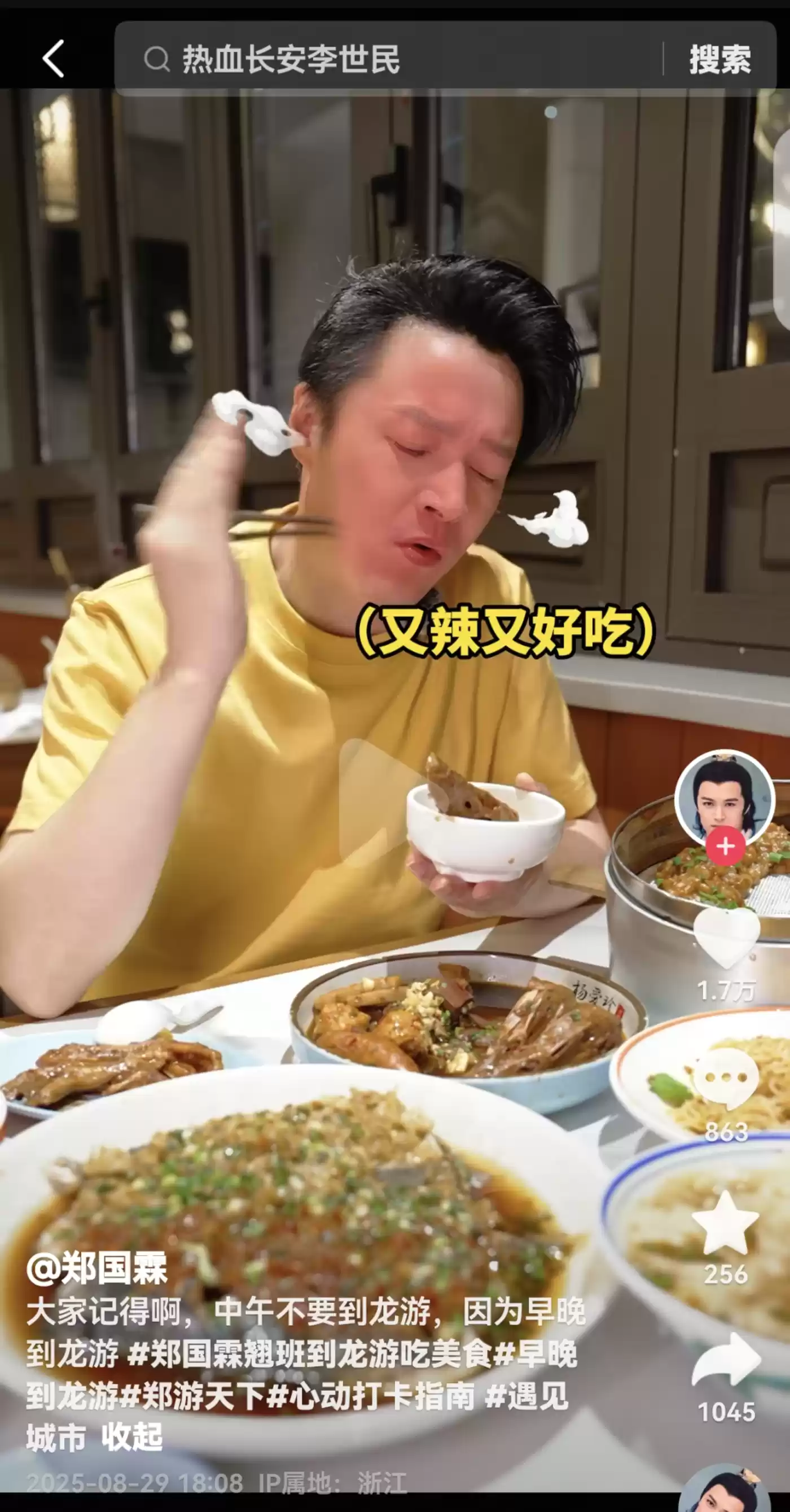 期间,桔佩除为郑国霖打造周末和节假日到景区出游的「郑游天下」系列,还孵化出非节假日、非周末的「郑的御膳」系列,填补平日的游玩流量低谷。「郑的御膳」是一个美食系列节目,到景区所在地品尝当地美食。
