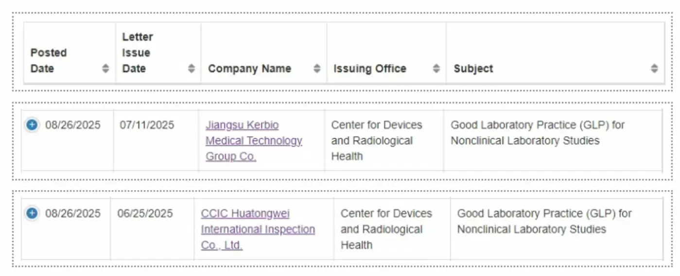 今年下半年FDA向两家中国医疗器械企业发出警告,图源:FDA正式