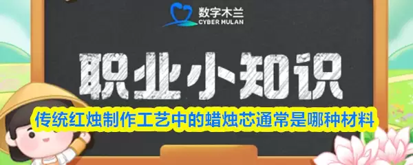 1、猜一猜:传统红烛制作工艺中的蜡烛芯通常是哪种材料