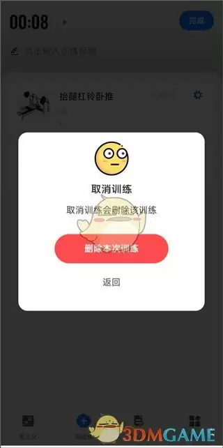 要开启训记APP的计时器,可先打开APP,点击首页最顶部按钮「创建一个空的训练」开始记录,编辑好训练次数后,每练完一组点一次「打勾」,此时会弹出计时器,默认以60秒规定组间间歇时间