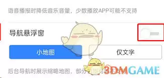 在悬浮导航设置页面中,你可以看到关于悬浮导航的一些介绍和开关按钮。点击开关按钮,将其状态切换为开启。开启成功后,在进行导航时,屏幕上会出现一个悬浮的导航窗口。