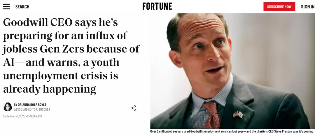 Goodwill 首席执行官表示,他正在为人工智能导致的 Z 世代失业潮做准备,还认为青年失业危机已经发生。