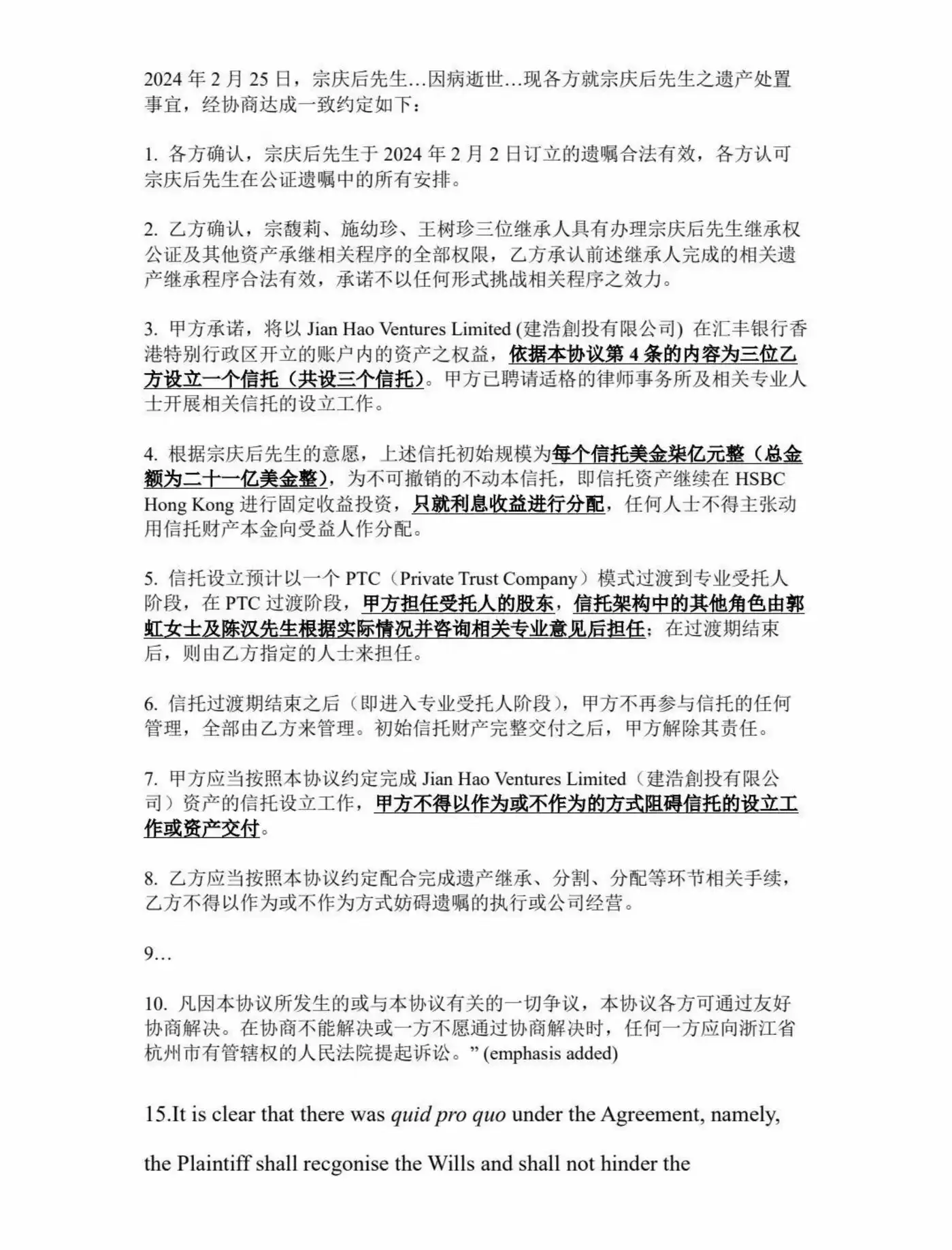 舆论质疑和诉讼压力下,宗馥莉不仅未采取任何安抚和谈判,反而试图通过上层监督施压,尽快确认回购协议效力,从而将关键股权纳入自身控制范围。