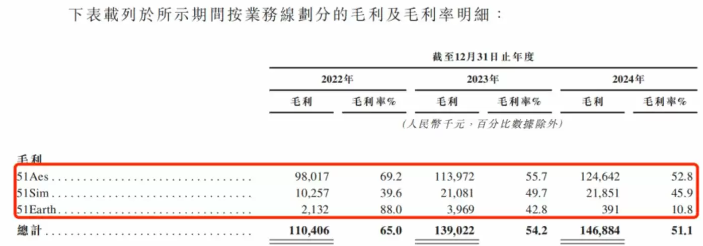 与此同时,51Earth的毛利率也从2024年的88%降至2024年的10.8%。除此之外,仅51Sim业务的毛利率有所上涨,从2024年的39.6%增长至2024年的45.9%。