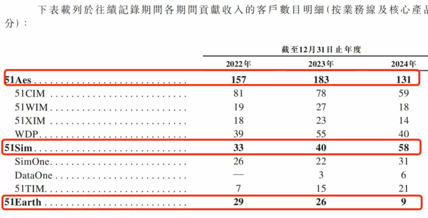 然而,五一视界的客户却没能保持增长态势。招股书显示,报告期内,51Aes客户数量从2024年的157个降至2024年的131个;51Earth的客户也从29个降至9个。