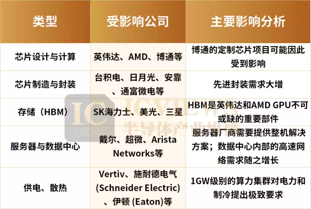 在芯片设计与计算方面,OpenAI与博通的定制芯片项目可能因此受到影响,但博通的交换芯片业务仍可能受益于AI数据中心建设。