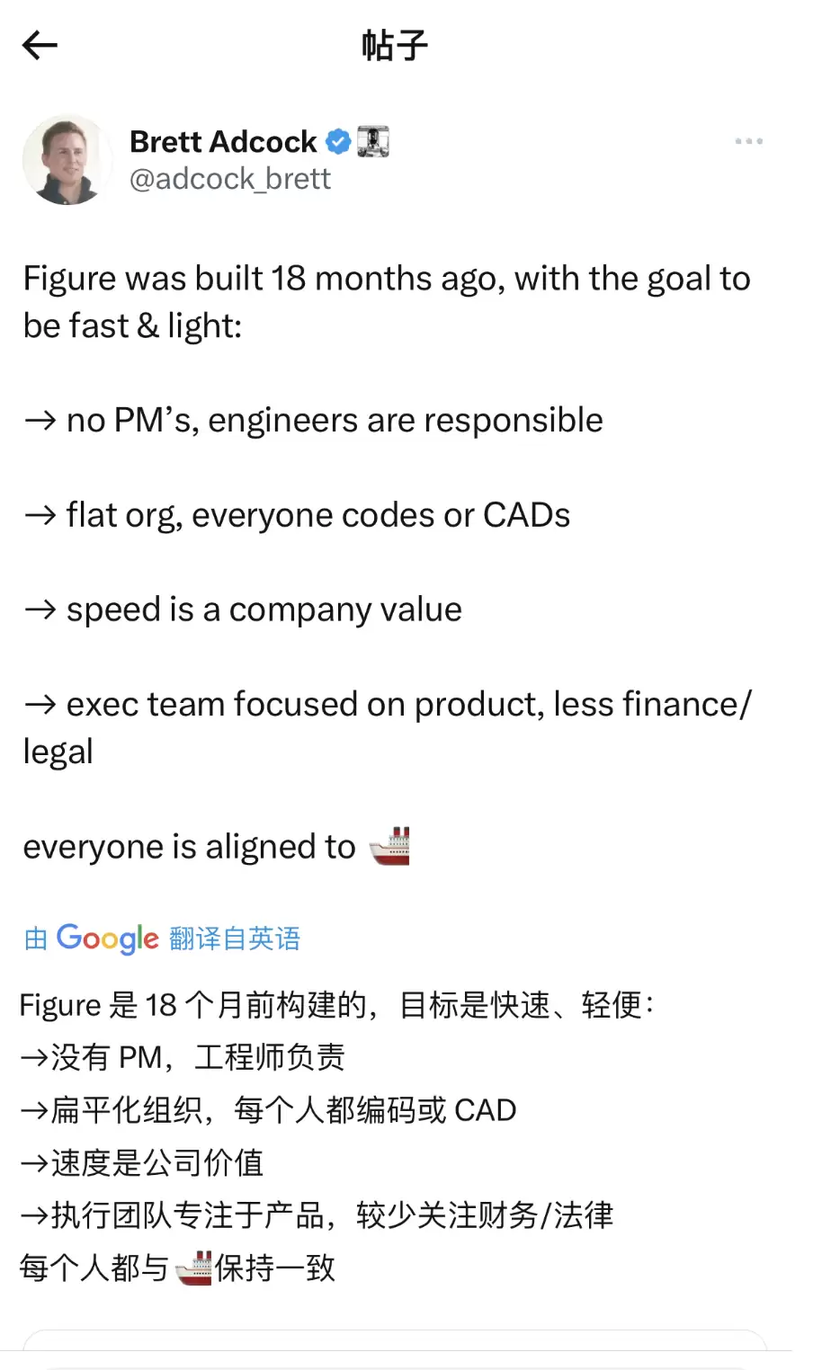 2024年4月,在Figure AI完成7000万美元A轮融资后,Brett Adcock几乎每天在X上更新创业动态。在外界的聚光灯下,Brett Adcock的每一次发布、每一次受访,既是技术展示,也是信号释放——这家公司不只是造机器人,更在构建一个让投资人“看得见未来”的故事。