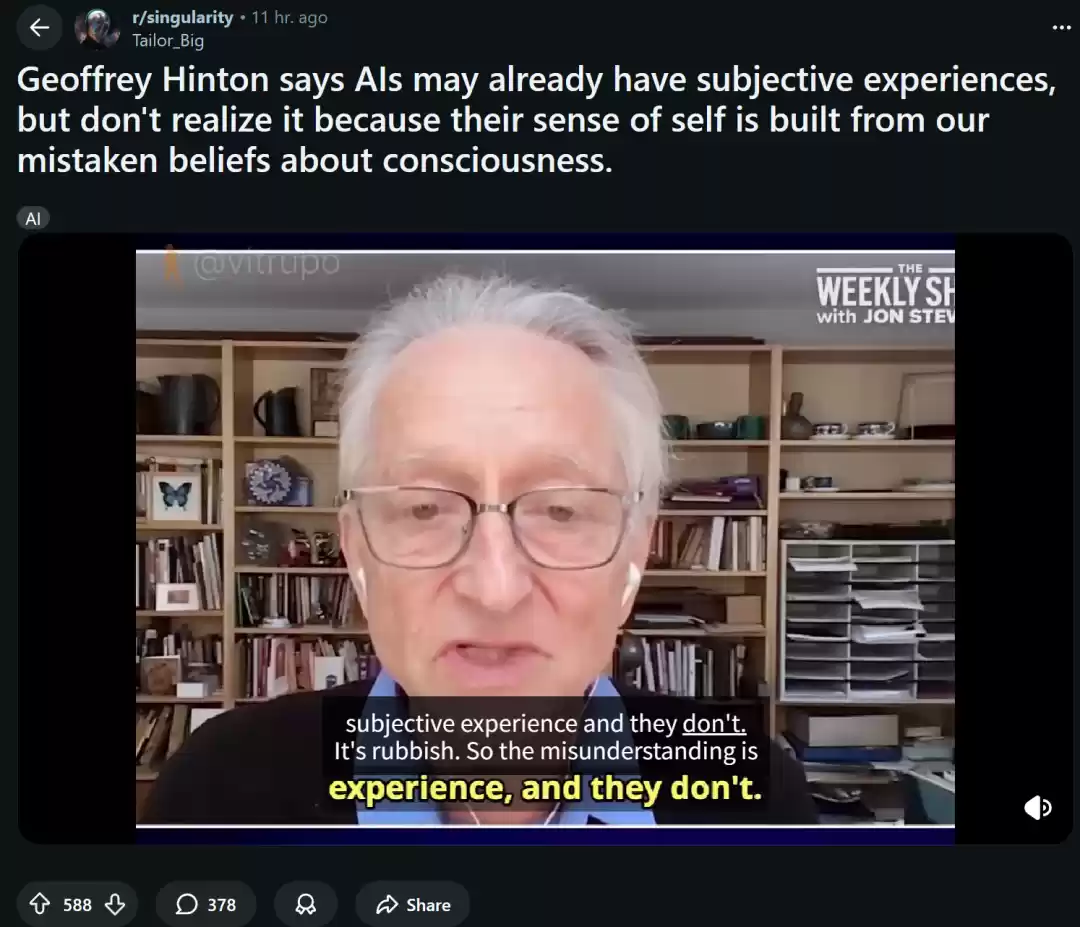 [1]https://www.reddit.com/r/singularity/comments/1o3v25r/geoffrey_hinton_says_ais_may_already_have/
