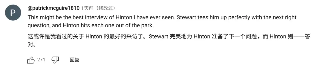 有看完节目的网友赞叹道,“这可能是目前看到的Hinton最好的采访”。