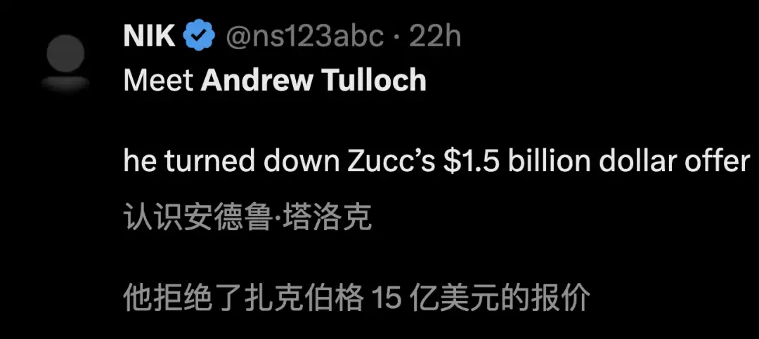 Meta前高管Mike Vernal对Tulloch更是赞不绝口,「他是一位绝对公认的AI天才」。