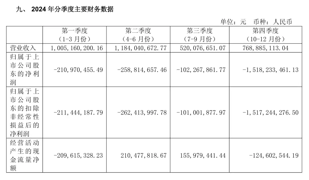 好景不长,到2024年,亿晶光电营收同比大降57.07%,亏损约20.90亿元。2024年四个季度,没有一个季度盈利,全部亏损。