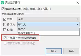 此时会弹出“突出显示修订”对话框。在这里,你可以设置修订的范围,比如是整个工作表,还是特定的单元格区域;还能指定修订的时间范围,只显示某个时间段内的修订。设置好后,点击“确定”,修订功能就开启啦。