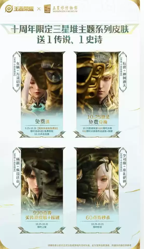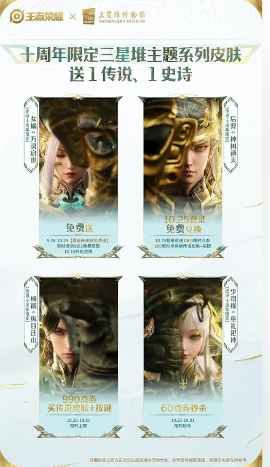 王者荣耀三星堆联动开启,十周年送免费传说皮肤