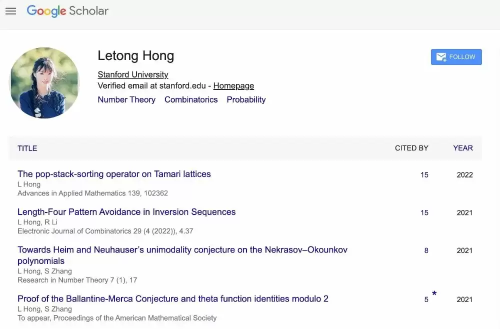 ▲洪乐潼谷歌学术主页(来源:谷歌学术)