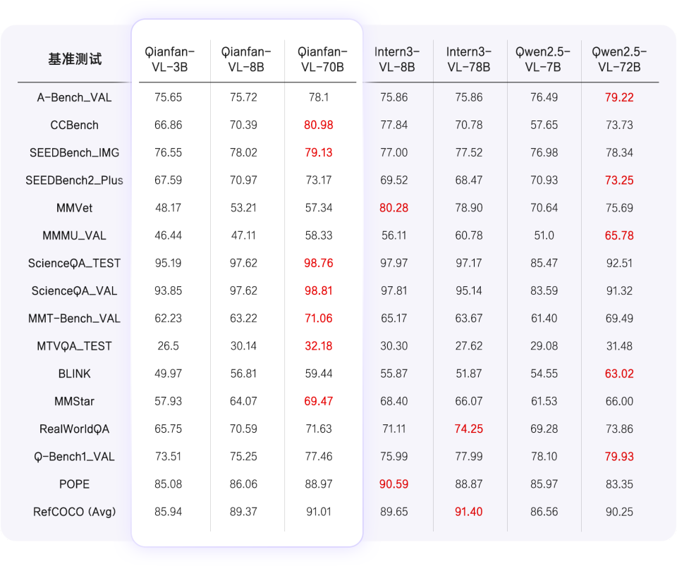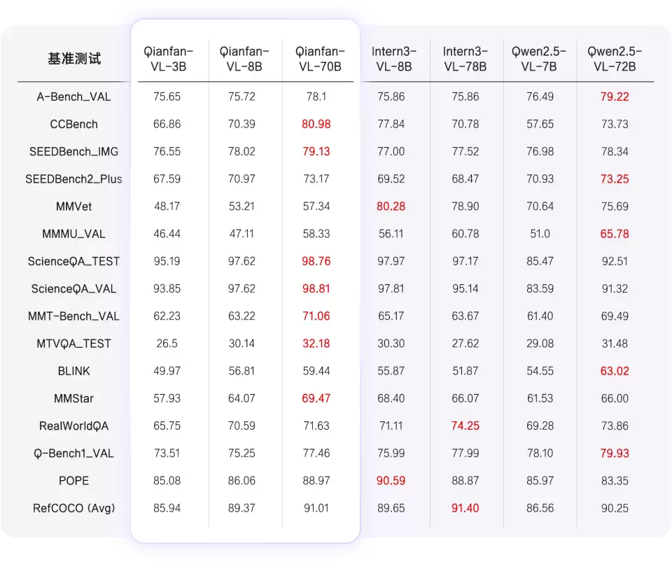报道指出,“在通用能力基准测试中,Qianfan-VL系列模型(3B、8B、70B)展现出显著核心优势。从视觉理解到专业领域问答,模型性能随参数规模增大提升显著”。