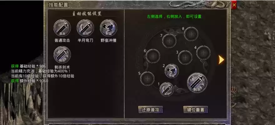 考虑到技能栏位的限制,这里推荐两套经典搭配:第一套适合练级刷怪,建议选择刺杀剑术、半月剑法、烈火剑法和开天斩的组合,能最大化战士的站桩输出效率。