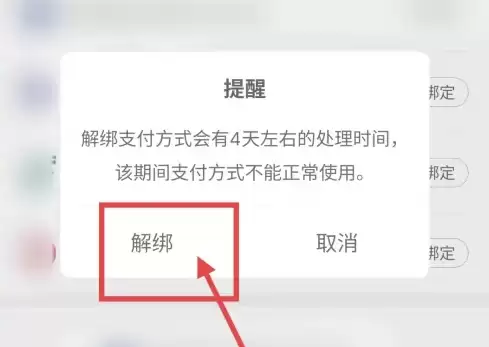仔细阅读解绑提示信息后,确认点击"解绑"按钮,系统将在4个工作日内完成解绑流程