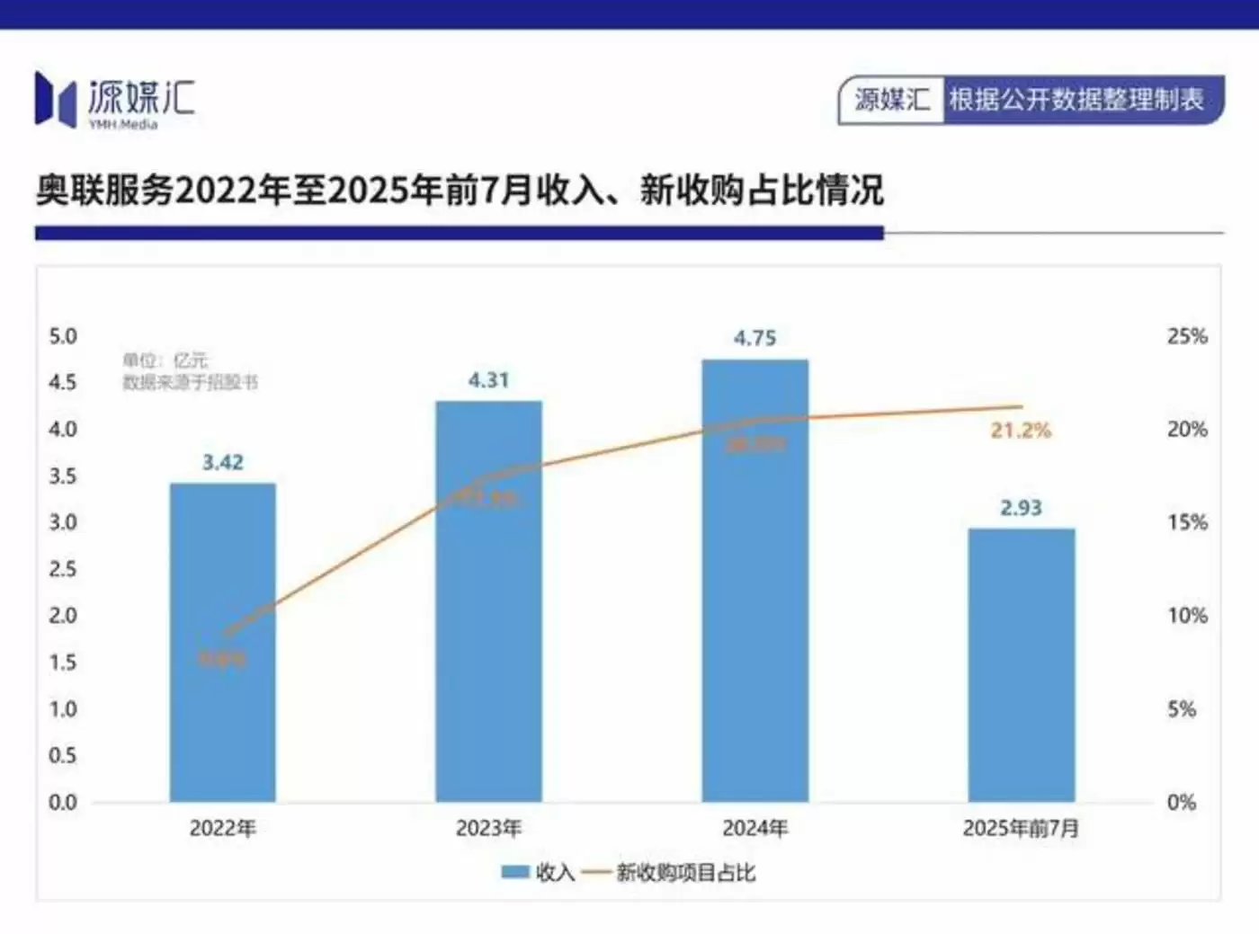 招股书显示,2024年至2025年前7月,奥联服务分别录得收入3.4亿元、4.3亿元、4.8亿元和2.9亿元。期间,完成收购15家位于湖南、贵州、广西等地的物业管理公司。