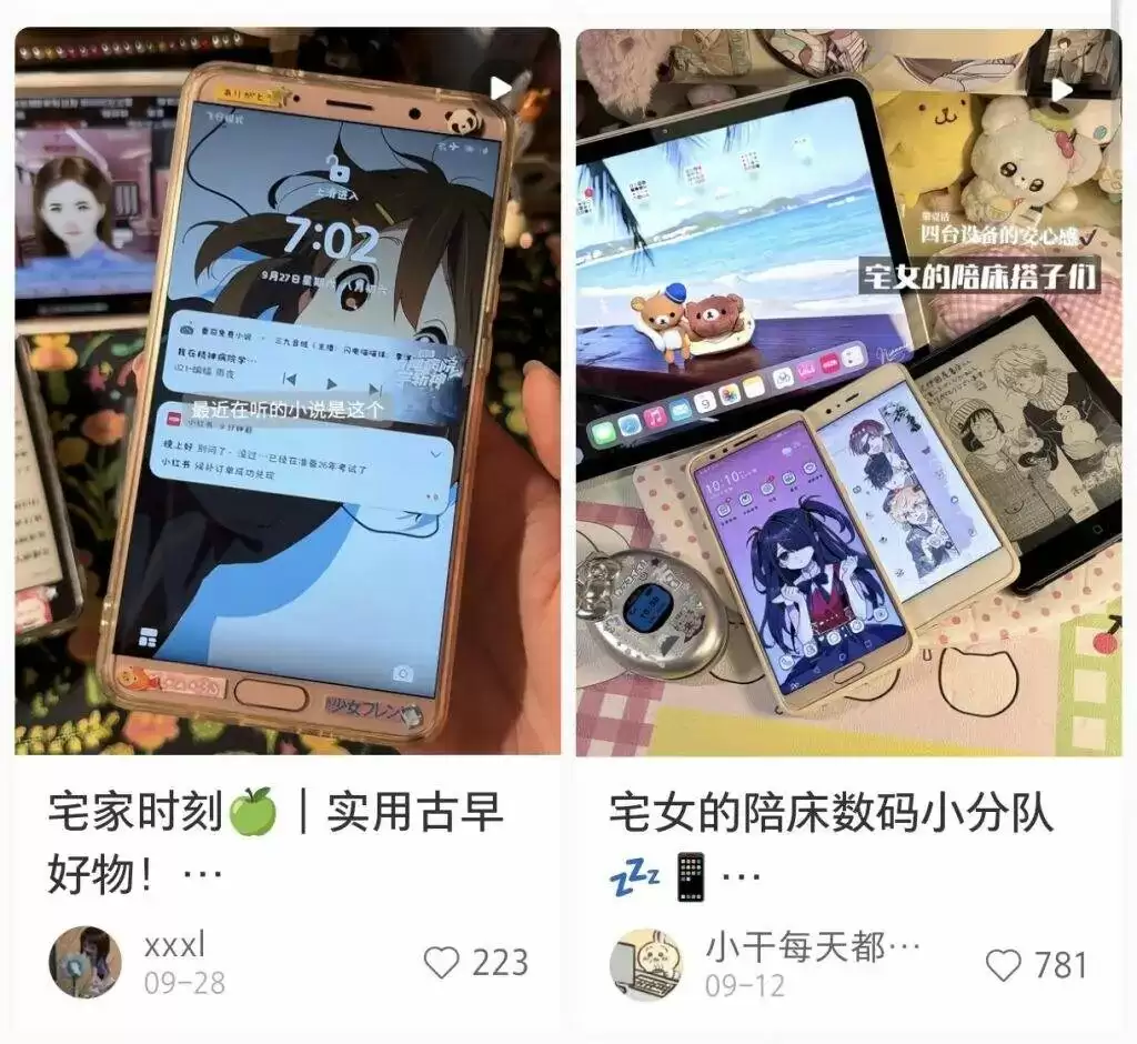 这些被「咕」得美美的旧手机,以及围绕它们精心制作的图文视频,成为身份表达和审美符号的载体,一种社交货币,或者说一种另类的「社交工具」——