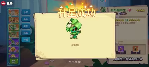 1、首先需要将植物升级至四星智能等级才能解锁潜能系统。举个例子,当我们将"榭寄生投手"培养到四星后,就能开启潜能玩法;
