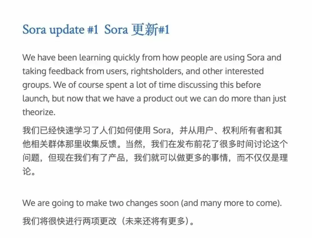 在收到大量投诉反馈之后,OpenAI开始了新的AI版权设计。OpenAI 首席执行官萨姆·奥特曼亲自发布了一篇题为 “Sora 更新#1”的博客文章,宣布了两项重大调整,正式宣告了“选择退出”政策的终结。