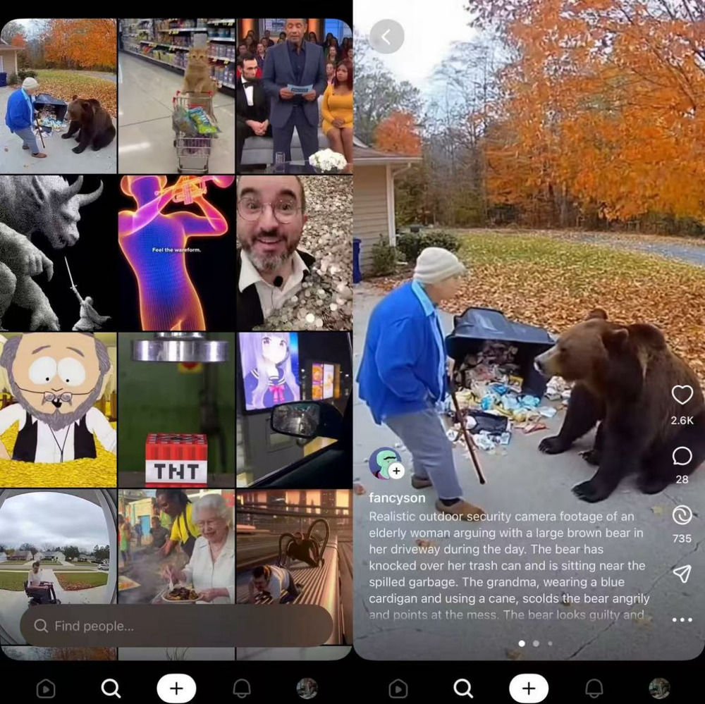 用户车车体验后认为,其娱乐性 “远不如抖音”:“Sora 上的内容更像‘自娱自乐’—— 每个人生成的视频都是围绕自己的虚拟形象或简单场景,没有抖音那样的话题挑战、达人生态,也缺乏能引发大众共鸣的内容,刷几条就会觉得单调。”