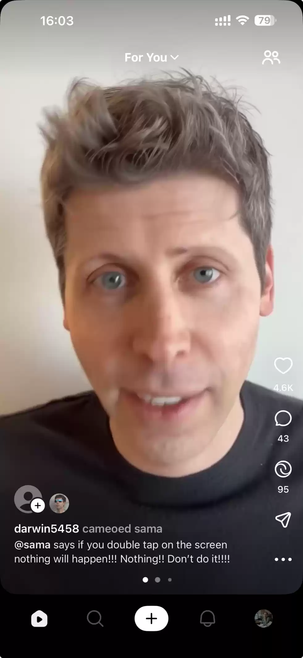 以奥尔特曼的虚拟数字形象和一张图片生成了一段视频,提示词为:“@sama在图片场景里说集美们,耶斯莫拉。”