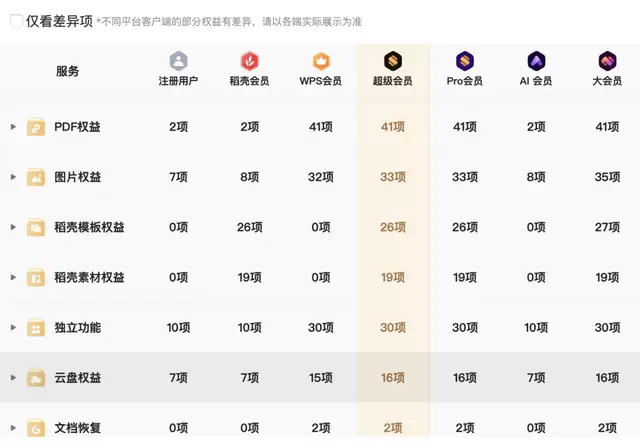 更令用户无法接受的是,WPS还在超级会员之下设置了若干个“独立套餐”,如编辑PDF的“PDF套餐”、云文档多设备同步的“云盘套餐”,大套餐里套小套餐,小套餐又单独拿出来收费,与当年视频 VIP、SVIP以及超前点映等套娃操作,有过之而无不及。
