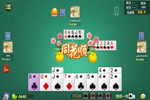 玩家想要灵活选择贡牌,必须满足一个重要前提:手中最大的牌不是王牌,并且存在多张并列的最大牌。当手中有两张或以上并列最大牌时,玩家便拥有选择空间。那么,此时应该交出哪一张牌最为合适呢?按照牌理分析,我们应该尽量防止回贡方利用这张牌增强牌力,尤其是避免帮助对方凑成同花牌型。