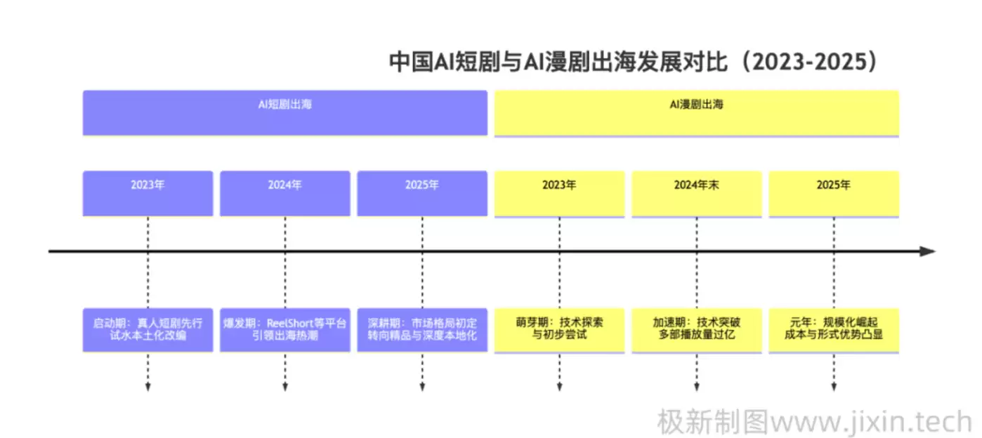 而随着AI技术的深度应用,中国文娱出海的内容形态正在发生明显转变:从真人短剧向AI漫剧拓展。2025年被行业普遍视为“AI漫剧元年”。