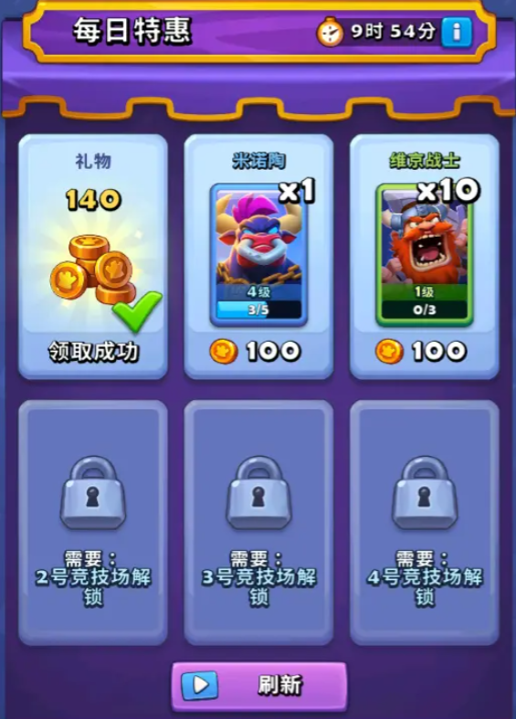 玩家还可关注商城中的每日礼包。每天刷新的免费礼包中,也有几率开出100枚金币的惊喜奖励。