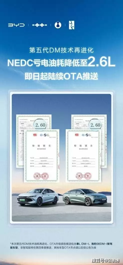比亚迪第五代DM技术迎来重大突破,从今天起正式启动OTA升级推送。这次升级聚焦能耗优化,在NEDC工况下将百公里亏电油耗降低10%,最低可达到2.6升,刷新全球插混车型的油耗纪录,为用户带来更经济实用的用车体验。