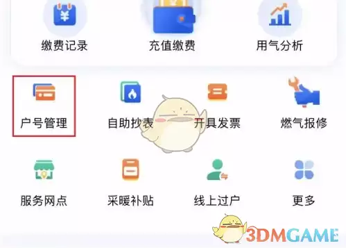 1、首先进入北京燃气App主界面,点击右下角的账户管理图标
