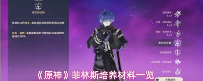 原神中菲林斯这位角色需要哪些培养材料?相信很多小伙伴都对这位新角色充满期待,如果想要提前做好准备的玩家可以开始收集他的培养材料了,这样在获得角色时就能立刻将他培养起来。