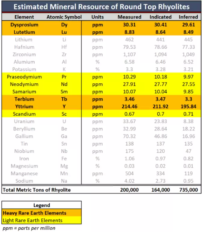 图:Estimated Mineral Resource of Round Top Deposit
