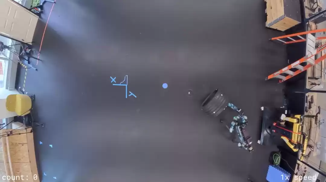 训练得到的轮胎滚动策略使机器人能够动态调整其躯干与Spot机械臂的位置,以稳定控制滚动的轮胎,防止其倾斜倾倒,并将其引导至目标位置。