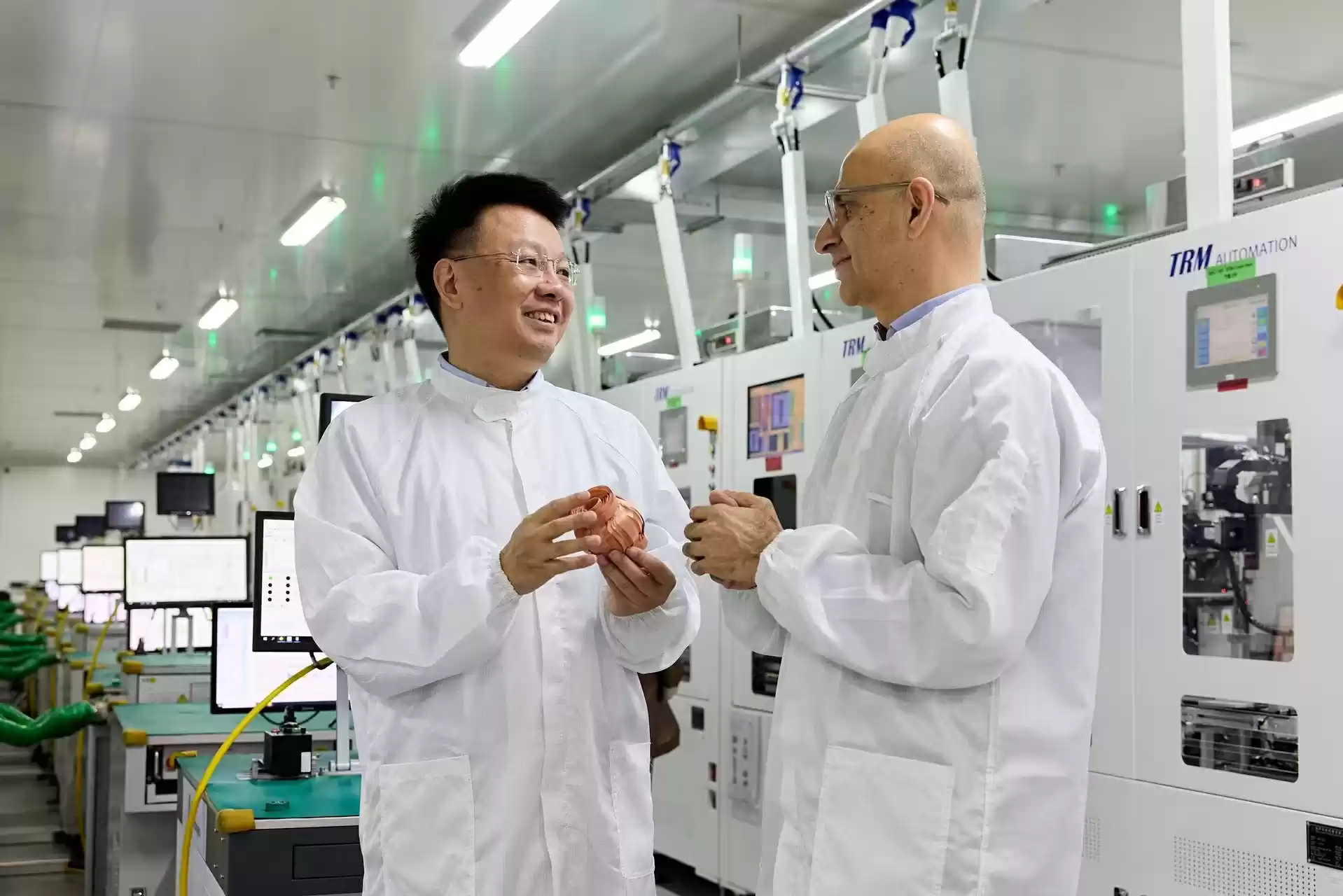 不仅如此,萨比赫·汗在蓝思科技所参观的一条组装箱体流水线,高度集成整合并实现了零间断点的智能组装工艺。其包含40多道全自动组装工序,涵盖铆焊、点胶与锁附功能精密结构件,以“一线流”概念解决了传统组装工艺存在的制程间断点多、半成品堆积与效率低等问题。