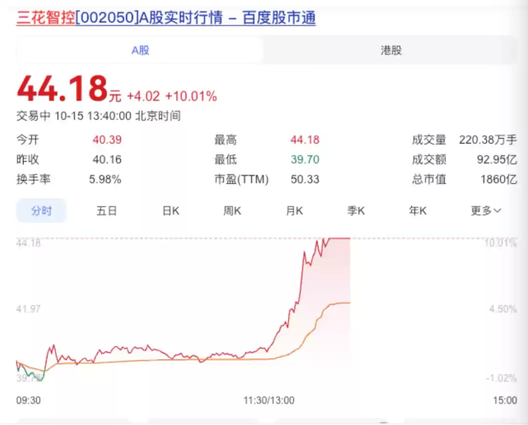 10月15日,特斯拉向中国供应商三花智控抛出6.85亿美元执行器订单,直接点燃A股机器人板块——三花智控涨停,产业链上下游企业集体飙升。