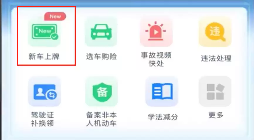 具体操作是这样的:进入首页后,直接点击“新车上牌”服务。