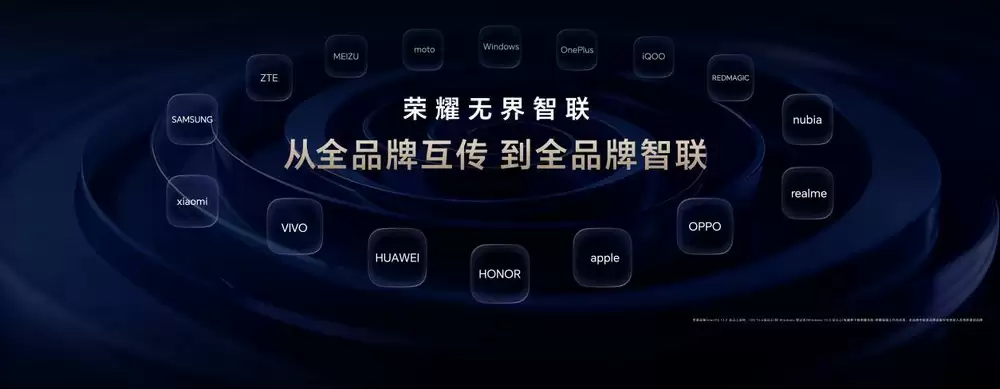 在荣耀Magic8系列上,"荣耀分享"进化至"荣耀无界智联",实现全品牌设备间的智能互联互通,包括与鸿蒙和iOS生态在内的全品牌、全设备都可以加入荣耀信任环,实现智能体跨端智联的革命性体验。