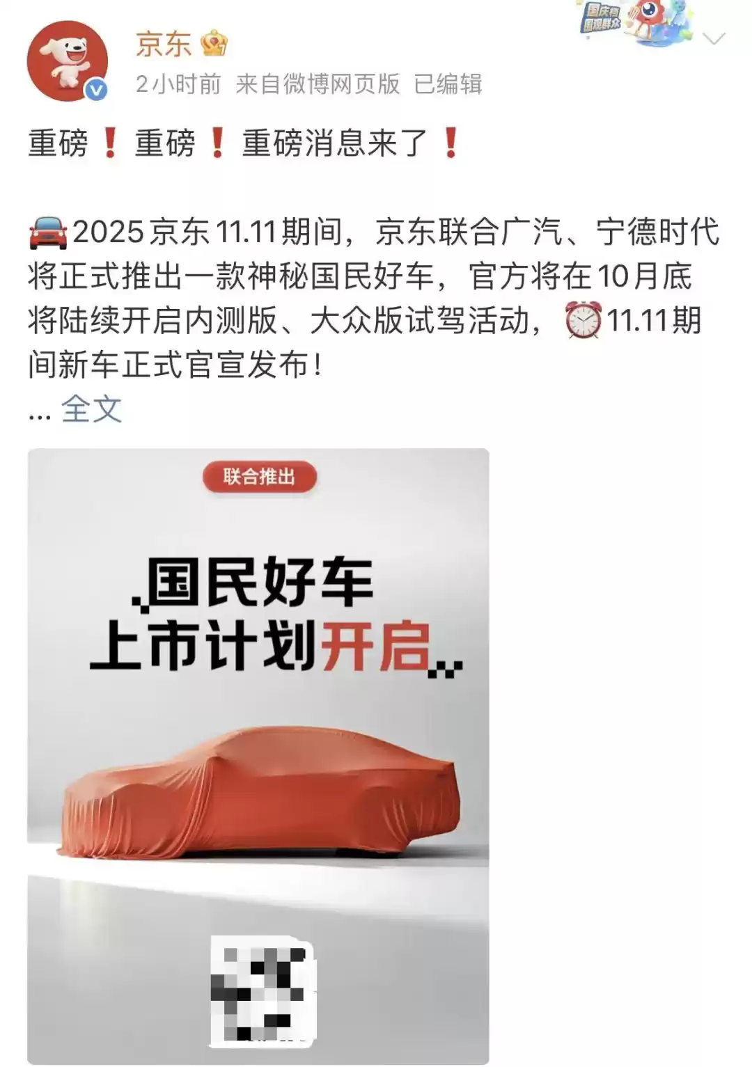 这款尚未揭晓真容的新能源车型,计划在双十一购物节期间正式亮相。作为京东首次深度参与的汽车项目,其销售模式颇具创新——将通过京东电商平台进行独家预售,消费者可在线完成车辆定制与订单支付。这种"电商+汽车"的新零售模式,能否在竞争激烈的新能源市场开辟新赛道,仍有待市场检验。