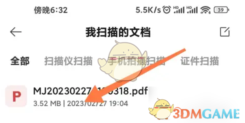 2、进入页面后,定位您需要分享的扫描文档。