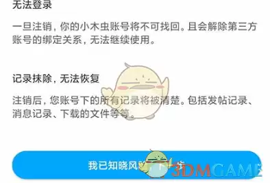 打开小木虫APP,点击右下角的「我的」进入个人中心,接着点击右上角的齿轮图标进入「设置」页面,找到「账号注销」选项并选择。阅读风险提示后点击「我已知晓,下一步」,选择注销原因并确认注销,即可完成账号注销操作。需要留意的是,注销后账号数据将无法恢复,建议您提前备份重要信息。