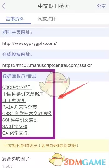 第三步:进入目标期刊详情页面后,您将直观看到该期刊的收录情况(这直接反映了期刊的学术级别)。
