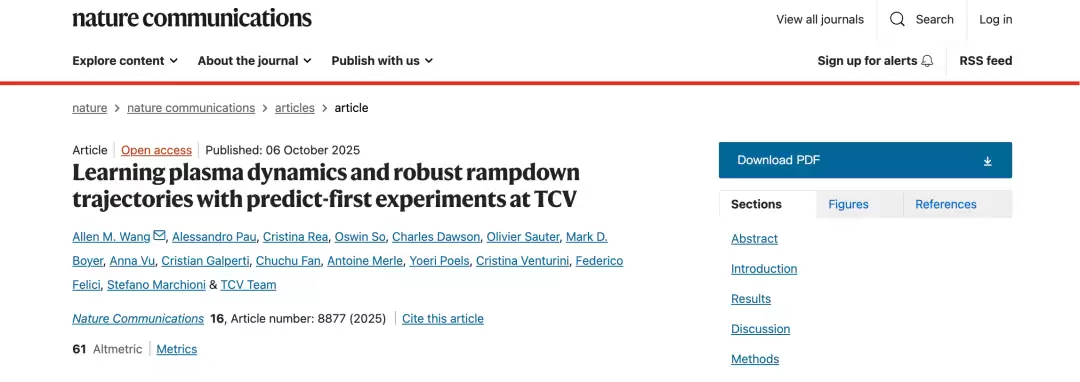 相关研究以《利用预测优先实验在TCV装置学习等离子体动力学与鲁棒衰减轨迹》为题,发表于《自然·通讯》期刊。