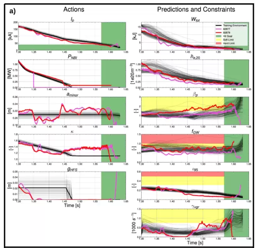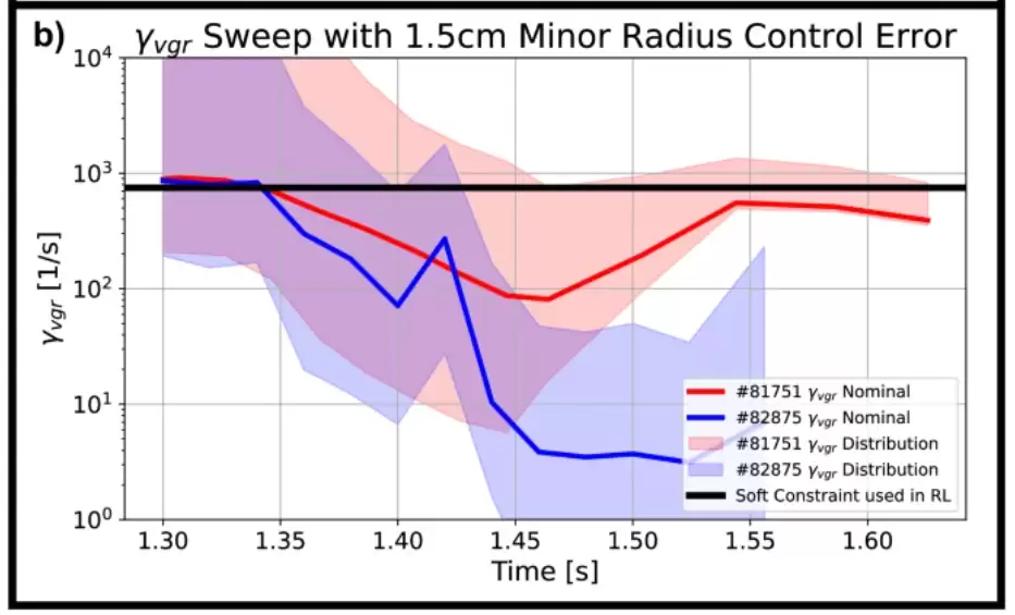 在一次编号为#81751的放电中,这一现象导致了等离子体的突然偏移与终止。研究团队据此在强化学习(RL)环境中引入间隙误差的不确定性分布,使轨迹在训练中主动适应不确定性。结果表明,经过重新优化的轨迹(#82875)在相似误差条件下依旧保持稳定。这一改进展示了模型从真实误差中学习鲁棒性的能力,也印证了数据驱动优化在安全约束条件下可实际提升装置运行容错性。