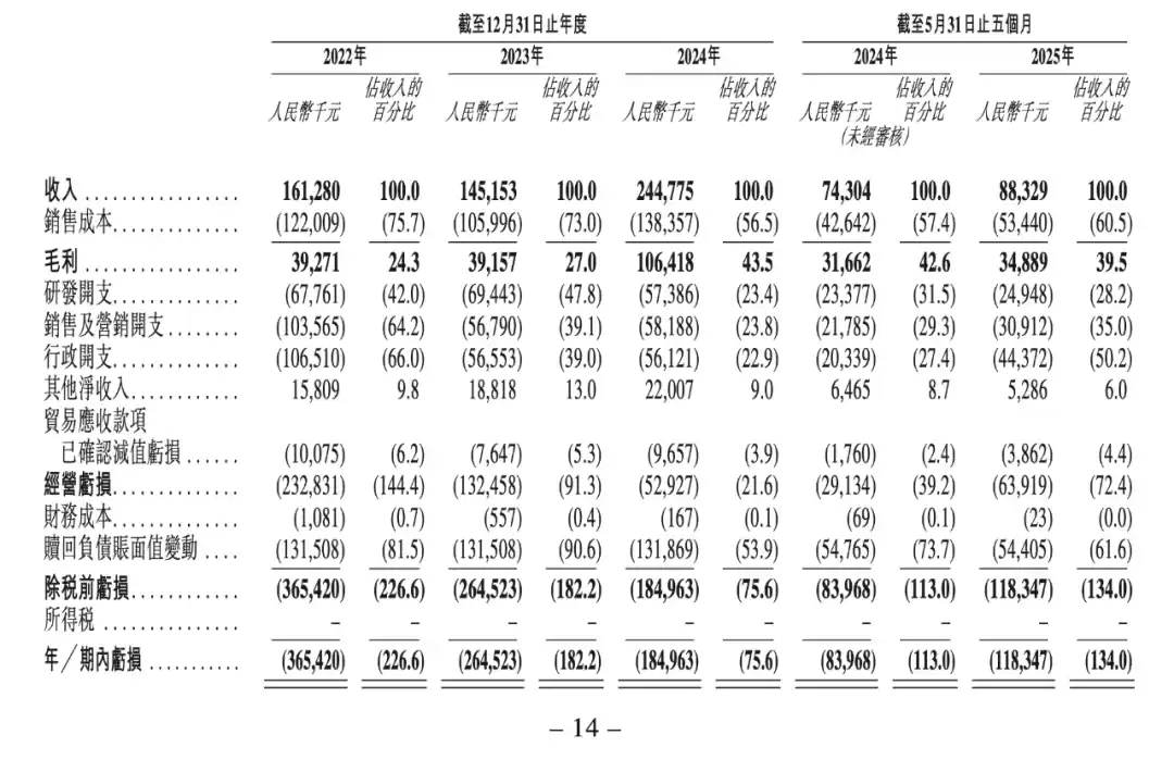 2024-2024年,云迹科技的收入分别约为1.61亿、1.45亿、2.45亿元,复合年增长率约23.2%;毛利润分别约为3927.1万、3915.7万、1.06亿元,复合年增长率约64.6%,毛利率分别为24.3%、27.0%、43.5%,呈逐年上升趋势;年内亏损分别约3.65亿、2.65亿、1.85亿元,经调整净亏损分别约为2.34亿、1.20亿、2755.9万元。