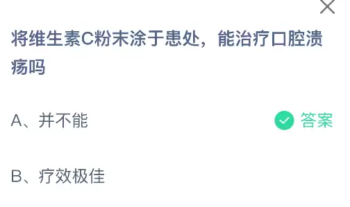 1、题目:把维生素C粉末涂在溃疡处,能治疗口腔溃疡吗